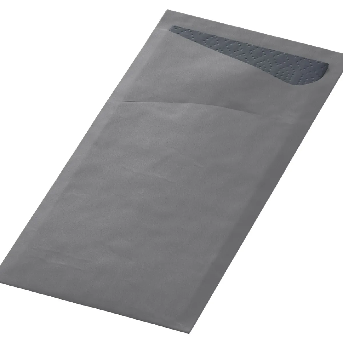 Hygienische und praktische Serviettentaschen. Eine praktische und simple Lösung, um das Besteck- und Servietten-Handling zu vereinfachen. Schnell und einfach vorbereitet und eingedeckt – auch in Stoßzeiten. Tolle Lösung für den Innen- und Außenbereich. In vielen Ton-in-Ton-Farben erhältlich. Enthält eine 2-lagige, kompostierbare Zelltuch-Serviette (33 × 33 cm).