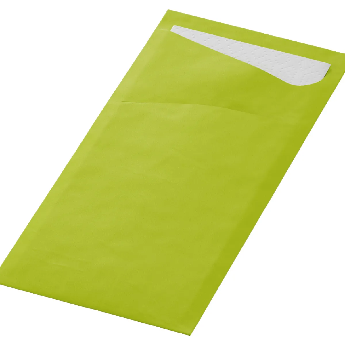 Hygienische und praktische Serviettentaschen. Eine praktische und simple Lösung, um das Besteck- und Servietten-Handling zu vereinfachen. Schnell und einfach vorbereitet und eingedeckt – auch in Stoßzeiten. Tolle Lösung für den Innen- und Außenbereich. In vielen Ton-in-Ton-Farben erhältlich. Enthält eine 2-lagige, kompostierbare Zelltuch-Serviette (33 × 33 cm).