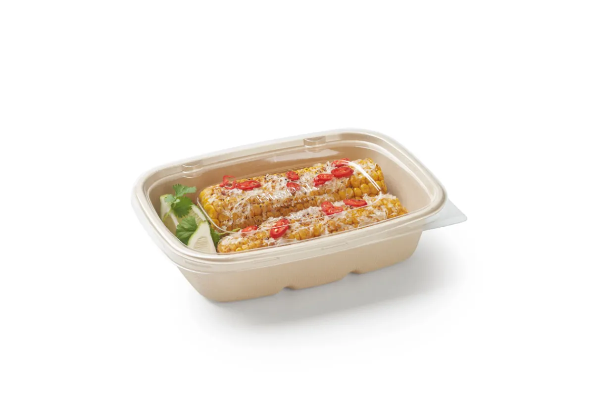 • Boxen und Zuckerrohrfaser-Deckel aus nachwachsenden Rohstoffen