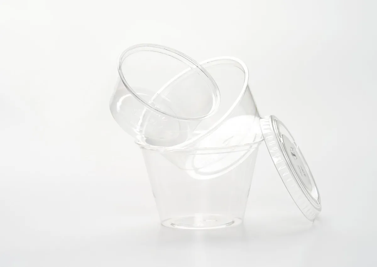Unsere Dressing- und Saucenbecher sind in mehreren praktischen und Größen erhältlich und passen perfekt zu all unseren nachhaltigen Take-away-Lösungen. Diese kristallklaren transparenten Becher bestehen zu 100 % aus recyceltem PET (RPET).