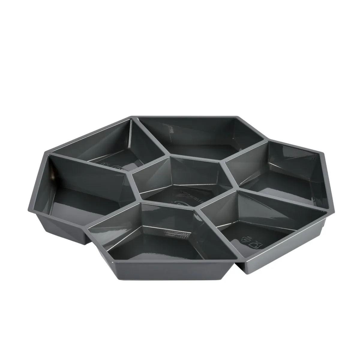•Dunkelgrauer, achteckiger Boden, der die Präsentation der Speisen verbessert
