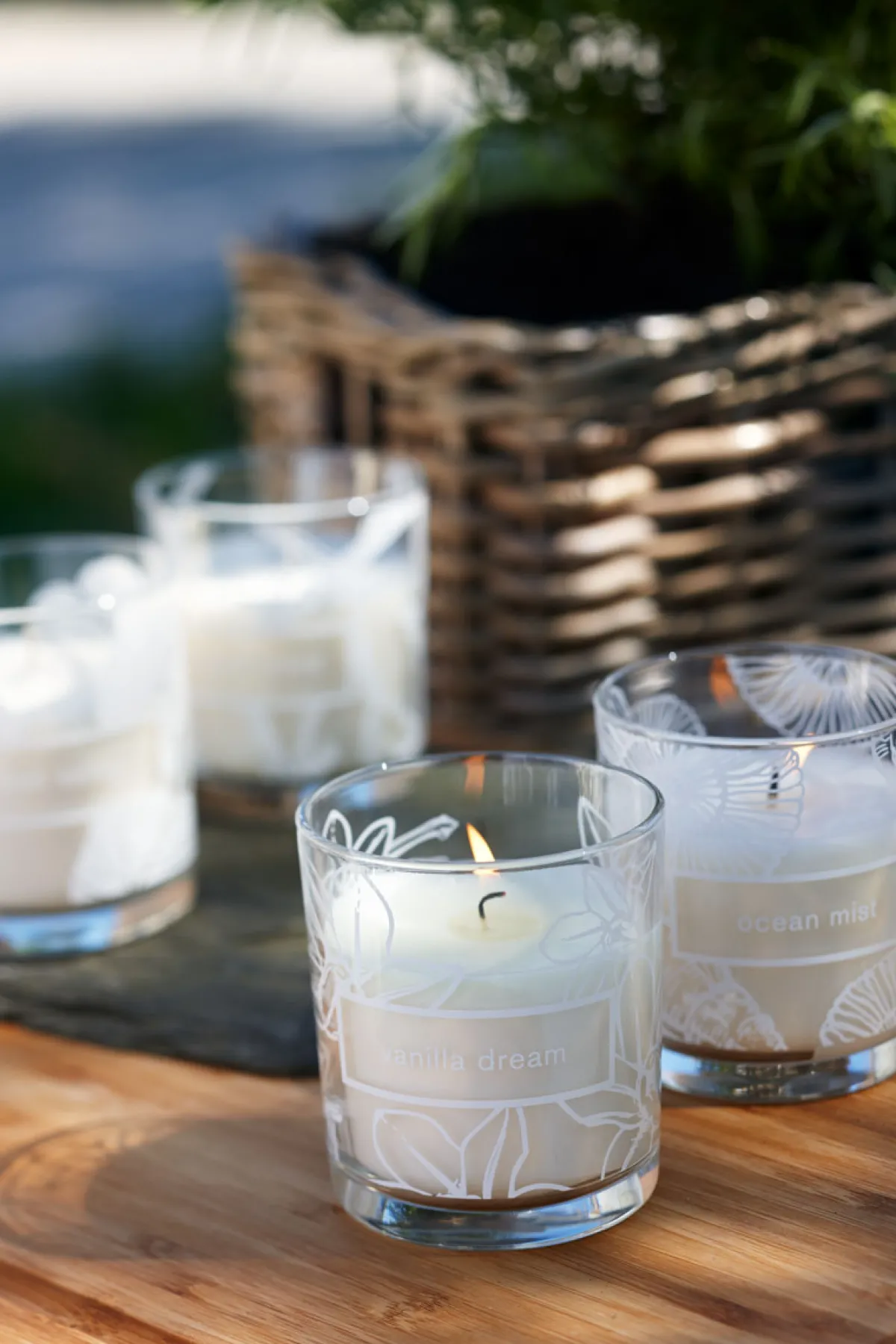 Mit unseren Duftkerzen im Glas sorgen Sie für eine wohlriechende Umgebung. Das elegante Design ihrer schlanken Halter ist von der Natur inspiriert. Die Duftkerzen brennen 30 Stunden und sind mit frischen Gerüchen erhältlich.