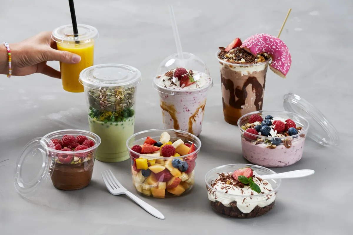 Unsere Crystal Gläser schonen die Umwelt, denn sie schließen Recyclingkreisläufe. Sie bestehen zu 100 % aus post-consumer recyceltem PET (RPET) und können nach Gebrauch dem Gebrauch problemlos wieder recycelt werden. Noch besser: Sie sind kristallklar und setzen Getränke, Snacks, Desserts & Co. perfekt und appetitlich in Szene. Es gibt sie in vielen verschiedenen Größen, die auch mit praktischen Einsätzen versehen und mit verschiedenen Deckelvarianten verschlossen werden können. Darüber hinaus können sie mit der Duniform® DF5-Maschine auslaufsicher versiegelt werden, um die Hygiene zu maximieren und die Haltbarkeitsdauer zu verlängern.