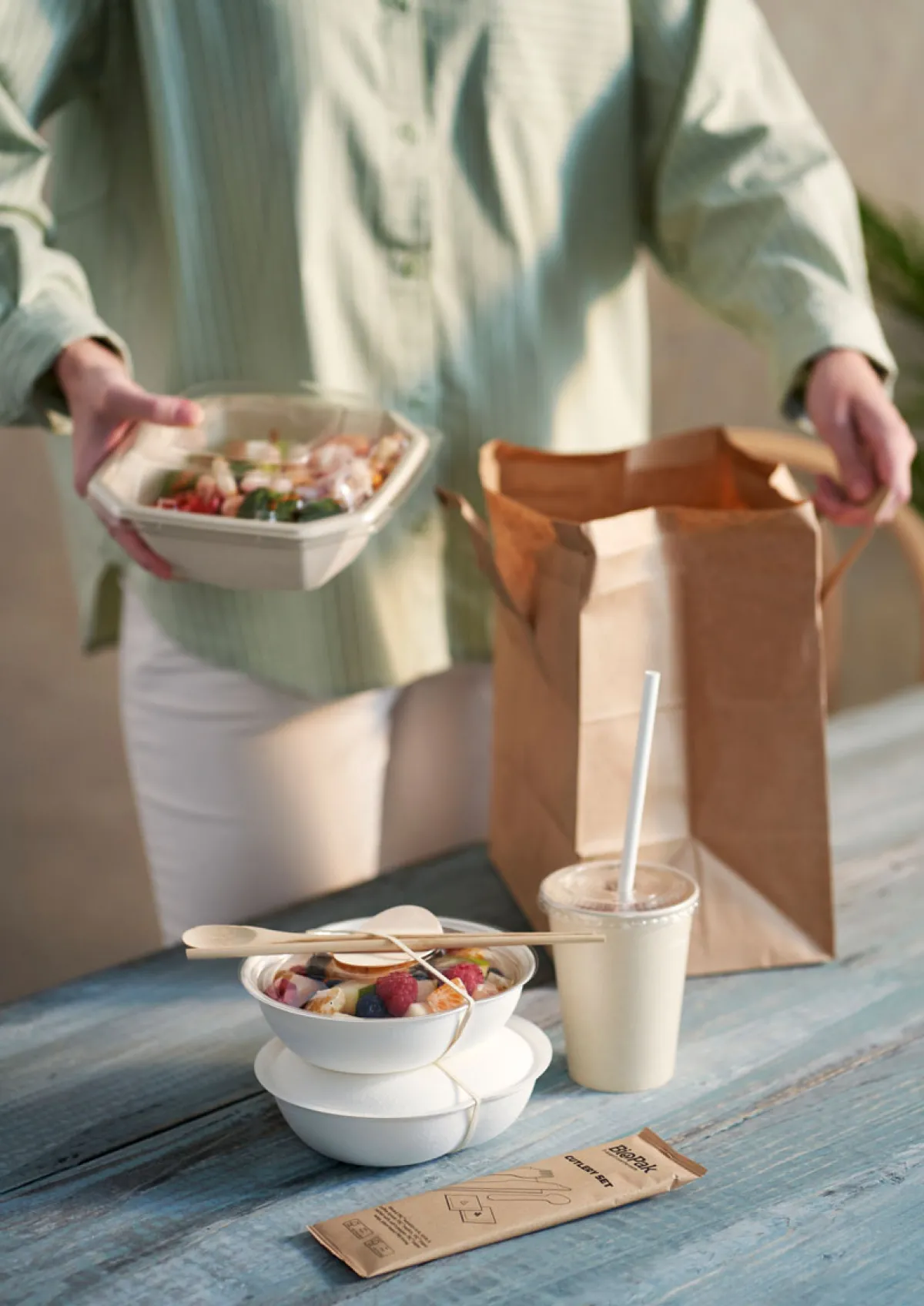 Unsere Octabagasse-Schalen und -Deckel werden aus erneuerbaren und kompostierbaren Zuckerrohrfasern (Bagasse) hergestellt und sind der absolute Favorit bei unseren Kunden. Sie sind ideal, wenn Sie formschönes Design, perfekte Präsentation und Komfort mit herausragender Funktionalität kombinieren möchten. Neben super-sicher schließenden Deckeln aus Zuckerrohrfasern stehen optional transparente Deckel aus 100 % post-consumer recyceltem PET (RPET) zur Verfügung, die nach Gebrauch problemlos wieder recycelt werden können. Unsere Speiseverpackungen – wie all unsere Boxen und Schalen – werden ohne Zusatz von PFAS hergestellt.