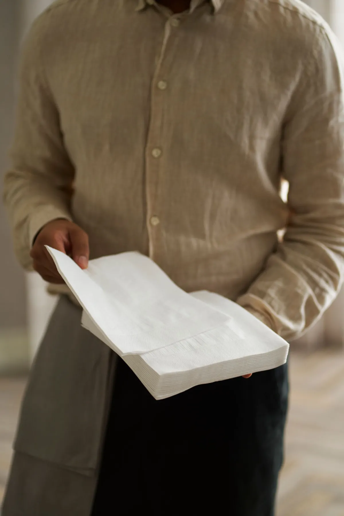 Großzügig in Format und Stimmung. Ein maximales Erlebnis für Gäste – sowie in Sachen Hygiene und Praktikabilität. Premium für jeden Tag. 4-lagige Zelltuch-Servietten mit geprägter Oberfläche sind ideal zu falten. Passt zu alltäglichen und festlichen Anlässen. Kompostierbar.