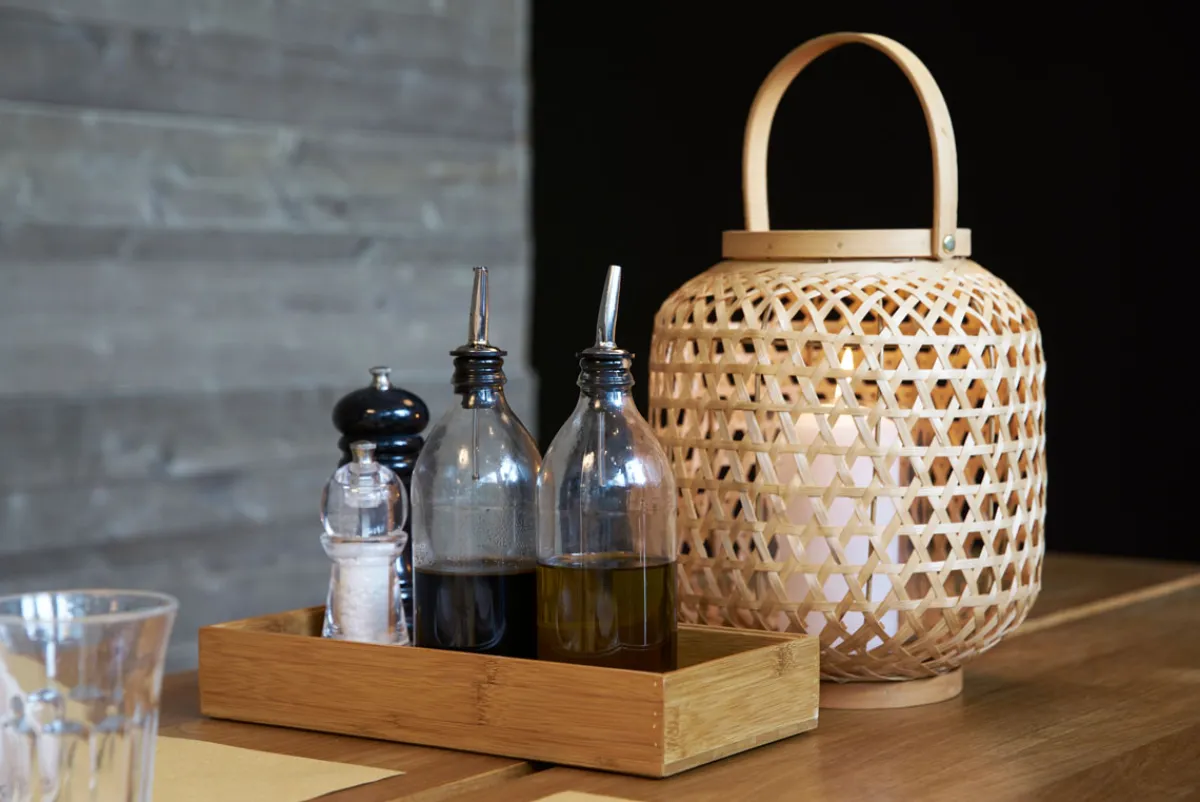 Platzsparend, ideal für Theken und Bars, verhindert Verschwendung von Servietten. Praktische Platzwunder. In den flexiblen Fächern finden Servietten, Besteck, Salz und Pfeffer etc. problemlos ihren Platz. Hergestellt aus umweltfreundlichem und stylischem Bambus.
