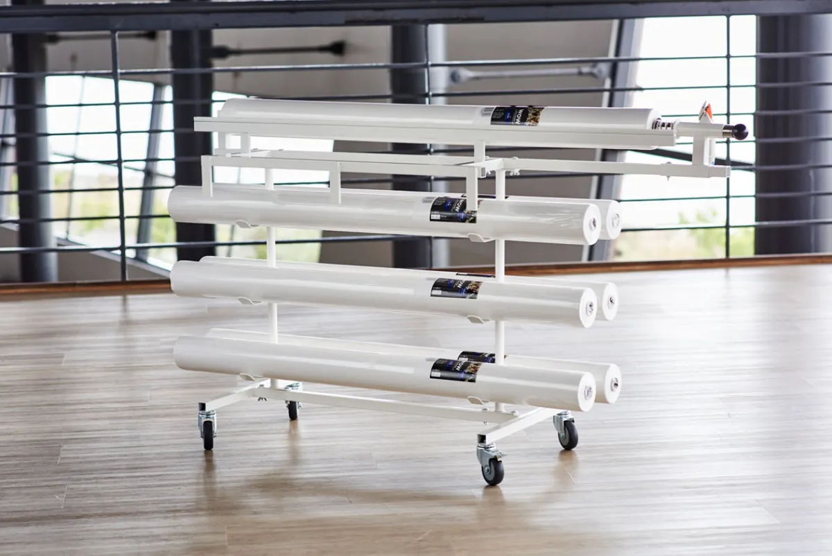 Wenn Sie mehrere Tischdeckenrollen auslegen müssen, aber nur wenig Zeit haben, ist unser Rollenständer „Saaleindecker“ eine große Hilfe. Er vereinfacht den Transport, die Handhabung und das Auslegen der Tischdeckenrollen. Legen Sie die Tischdeckenrollen mühelos auf den Tisch, und ziehen Sie sie rasch und unkompliziert auf die gewünschte Länge aus.
