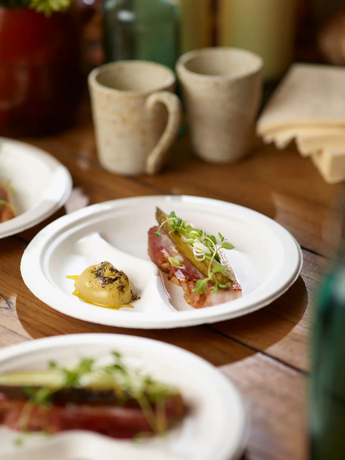 Unser Dine-Tellersortiment bietet nachhaltige Teller aus kompostierbaren Zuckerrohrfasern (Bagasse) in einer Vielzahl von Formen und Größen. Von kleineren Desserttellern und Eierbechern bis hin zu größeren ovalen Servierplatten bietet unser Dine-Sortiment für jeden Bedarf eine richtige Lösung. Unsere Speiseverpackungen – wie all unsere Teller und Schalen – werden ohne Zusatz von PFAS hergestellt.