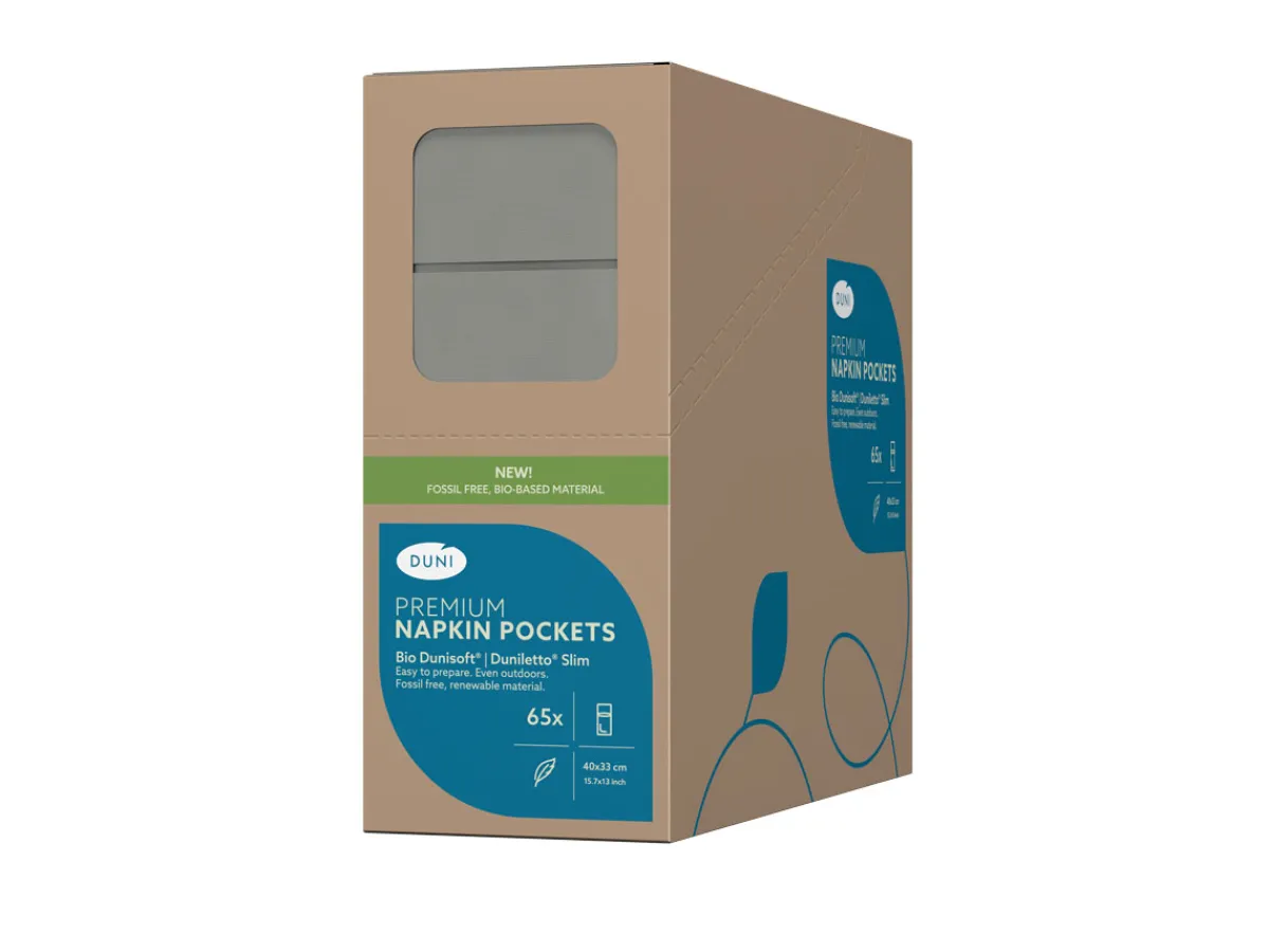 Hygienische und praktische Serviettentaschen. Eine praktische und simple Lösung, um das Besteck- und Servietten-Handling zu vereinfachen. Schnell und einfach vorbereitet und eingedeckt – auch in Stoßzeiten. Tolle Lösung für den Innen- und Außenbereich. In Optik und Haptik nicht von Stoff zu unterscheiden. Elegant geprägt, weich und dick. Kompostierbar.
