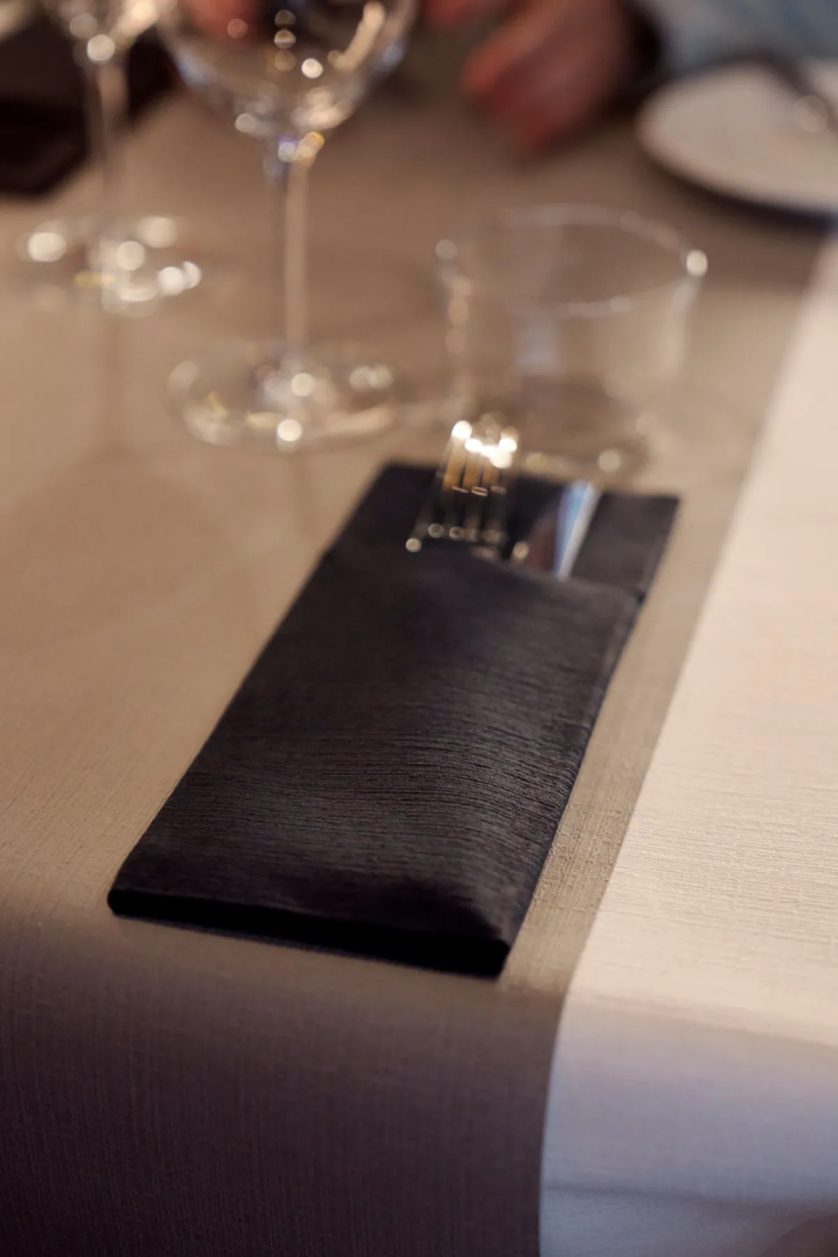 Hygienische und praktische Serviettentaschen. Eine praktische und simple Lösung, um das Besteck- und Servietten-Handling zu vereinfachen. Schnell und einfach vorbereitet und eingedeckt – auch in Stoßzeiten. Tolle Lösung für den Innen- und Außenbereich. In Optik und Haptik nicht von Stoff zu unterscheiden. Elegant geprägt, weich und dick. Kompostierbar.