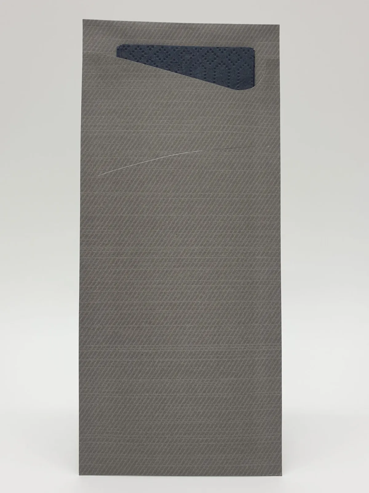Hygienische und praktische Serviettentaschen. Eine praktische und simple Lösung, um das Besteck- und Servietten-Handling zu vereinfachen. Schnell und einfach vorbereitet und eingedeckt – auch in Stoßzeiten. Tolle Lösung für den Innen- und Außenbereich. In vielen Ton-in-Ton-Farben erhältlich. Enthält eine 2-lagige, kompostierbare Zelltuch-Serviette (33 × 33 cm).