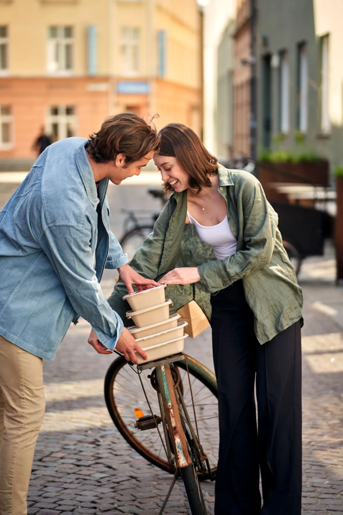 Das Cube-Konzept ist praktisch, einfach im Handling und ein zeitloser Klassiker für sämtliche Arten von Speisen, ob warm oder kalt. Die quadratischen und rechteckigen Formen sind perfekt für eine effiziente Ausnutzung des Platzes, nicht nur bei der Lagerung, sondern wahlweise auch im Kühlregal oder der Auslage. Die aus erneuerbaren Zuckerrohrfasern hergestellten Boxen können nach Gebrauch entweder kompostiert oder recycelt werden. Die dazugehörigen Deckel aus Bagasse oder 100 % recyceltem PET verschließen supersicher – für absolut auslaufsicheren Transport Ihrer Gerichte. Die transparenten rPET-Deckel bestehen zu 100% aus post-consumer recyceltem PET, beschlagen nicht und ermöglichen so eine genussvolle Speisenpräsentation. Unsere Speiseverpackungen – wie all unsere Boxen und Schalen – werden ohne Zusatz von PFAS hergestellt.