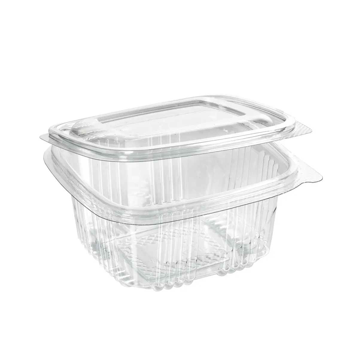 Unser Hinged Deli-Sortiment gibt dem, was sonst im Abfall landet, einen neuen Zweck. Die Produkte aus kristallklarem, zu 80 % recyceltem PET (RPET) sind die ultimative Lösung, wenn Sie die Vielfalt und Kreativität Ihrer Speisen zur Schau stellen und gleichzeitig nachhaltig wirtschaften möchten. Mit ihren praktischen Größen und dem passenden Klappdeckel hält die Hinged Deli-Reihe Ihre Lebensmittel gekühlt, geschützt und appetitlich. Nach Gebrauch leicht zu recyceln.