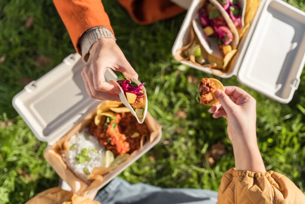 Unsere Boxen mit anhängendem Klappdeckel sind die optimale Wahl für Fast-Food. Sie werden aus erneuerbaren und kompostierbaren Zuckerrohrfasern (Bagasse) hergestellt und sind ebenso nachhaltig wie praktisch. Es gibt sie in verschiedenen Größen und mit unterschiedlichen Fachgrößen, was Zubereitung und Servieren denkbar einfach macht. Unsere Speiseverpackungen – wie all unsere Boxen und Schalen – werden ohne Zusatz von PFAS hergestellt.