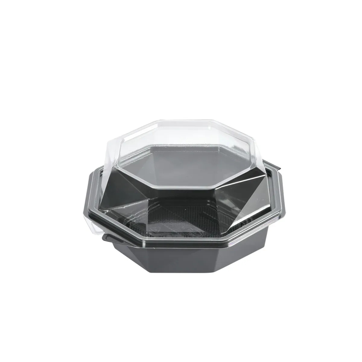 Die Octaview-Take-away-Box schützt frische, kalte Speisen und präsentiert sie gleichzeitig optimal – aus Respekt vor den Lebensmitteln und den Menschen, die sie zubereiten. Sie wurde für Lebensmitteleinzelhändler, Caterer und Feinkosttheken entwickelt und verfügt über einen kristallklaren, beschlagfreien Deckel und einen großen, dunkelgrauen Bereich, der Salate, Sushi, Meeresfrüchte und Wurstwaren hochwertig in Szene setzt. Octaview wird aus APET ohne Ruß hergestellt und reduziert die CO₂-Emissionen um bis zu 78 % über die gesamte Produktpalette hinweg*, wodurch die Sorgfalt im Umgang mit Lebensmitteln mit einer geringeren Umweltbelastung verbunden wird.