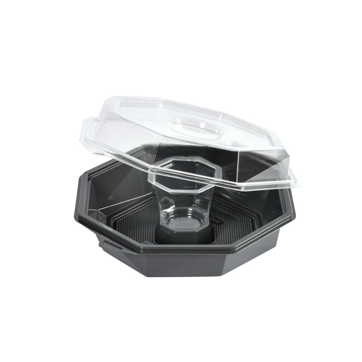Die Octaview-Take-away-Box schützt frische, kalte Speisen und präsentiert sie gleichzeitig optimal – aus Respekt vor den Lebensmitteln und den Menschen, die sie zubereiten. Sie wurde für Lebensmitteleinzelhändler, Caterer und Feinkosttheken entwickelt und verfügt über einen kristallklaren, beschlagfreien Deckel und einen großen, dunkelgrauen Bereich, der Salate, Sushi, Meeresfrüchte und Wurstwaren hochwertig in Szene setzt. Octaview wird aus APET ohne Ruß hergestellt und reduziert die CO₂-Emissionen um bis zu 78 % über die gesamte Produktpalette hinweg*, wodurch die Sorgfalt im Umgang mit Lebensmitteln mit einer geringeren Umweltbelastung verbunden wird.