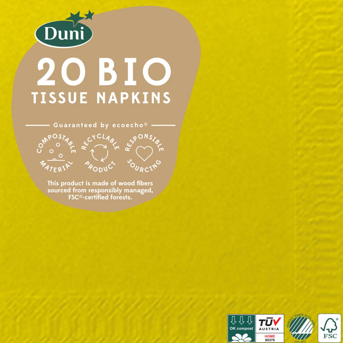 Praktische und handliche Servietten. Die funktionale Wahl. Geeignet für Fingerfood, Kaffee und Cocktails. Je mehr Lagen, desto strapazierfähiger. Kompostierbar.