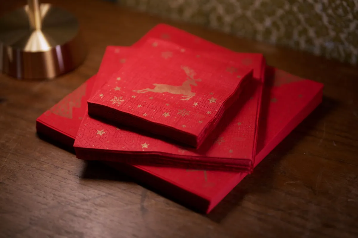 Unsere strapazierfähigen und handlichen 3-lagigen Zelltuch-Servietten gibt es in mehreren lebendigen Designs. Sie eignen sich besonders gut für Drinks und Fingerfood in zwangloser Atmosphäre und ermöglichen eine schnelle Reinigung, wenn ein Getränk verschüttet wird.