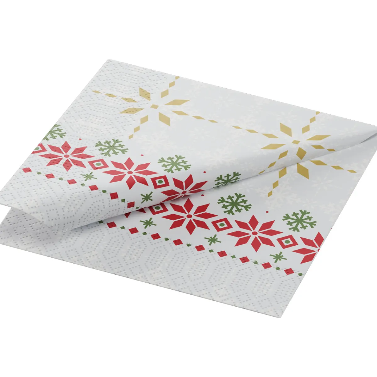 Unsere strapazierfähigen und handlichen 3-lagigen Zelltuch-Servietten gibt es in mehreren lebendigen Designs. Sie eignen sich besonders gut für Drinks und Fingerfood in zwangloser Atmosphäre und ermöglichen eine schnelle Reinigung, wenn ein Getränk verschüttet wird.