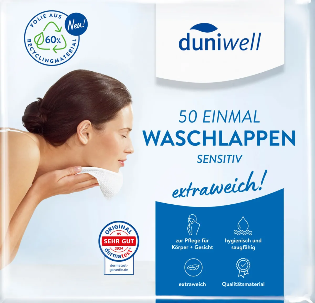 DUNIWELL Einmal Waschlappen sind ideal für die tägliche Hautpflege und geben ein rundum gutes Hautgefühl! Das weiche, extrafeste Qualitätsmaterial reinigt besonders hautschonend und gründlich. Ob zu Hause, beim Sport oder unterwegs. Ist sehr hygienisch, praktisch und überall einsetzbar.