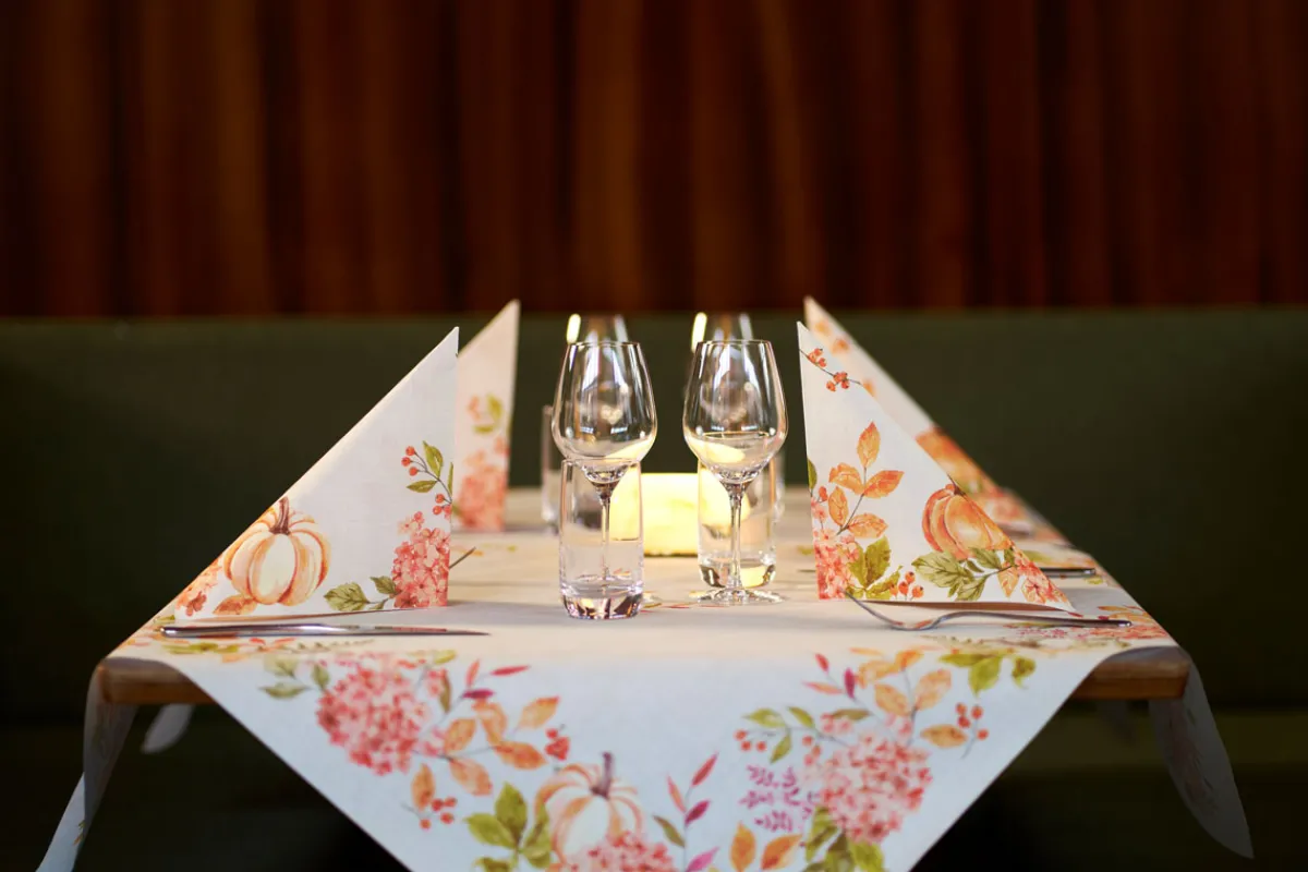 Unsere weichen und robusten Bio Dunicel®-Mitteldecken sind auf Nachhaltigkeit ausgelegt. Sie verkleinern Ihren ökologischen Fußabdruck und punkten gleichzeitig mit einem guten Drapierverhalten und einer wasserabweisenden Oberfläche. Mit unseren Bio Dunicel®-Mitteldecken, die aus vollständig nachwachsenden Materialien ohne fossile Brennstoffe hergestellt sind, sieht jeder Tisch auch bei der längsten Veranstaltung ansprechend aus.