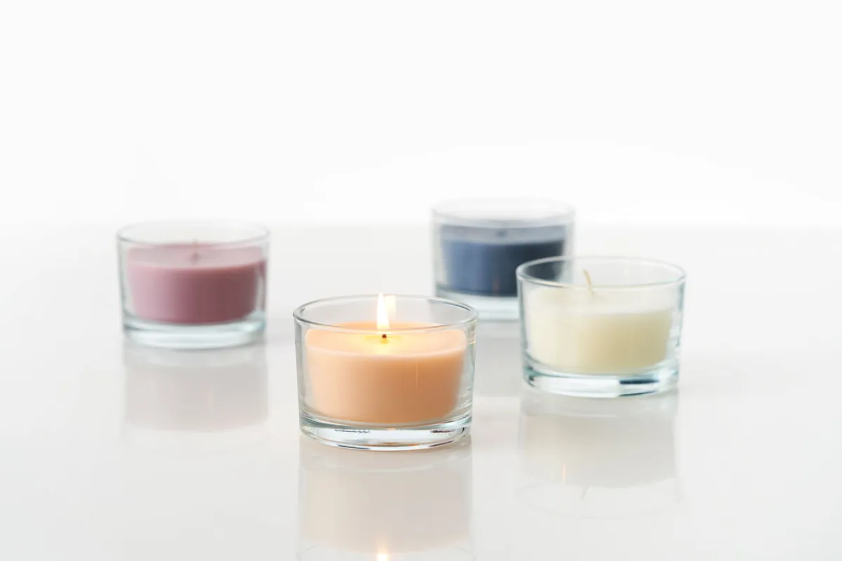 • Paket aus Kerze und wiederverwendbarem Kerzenhalter aus Glas