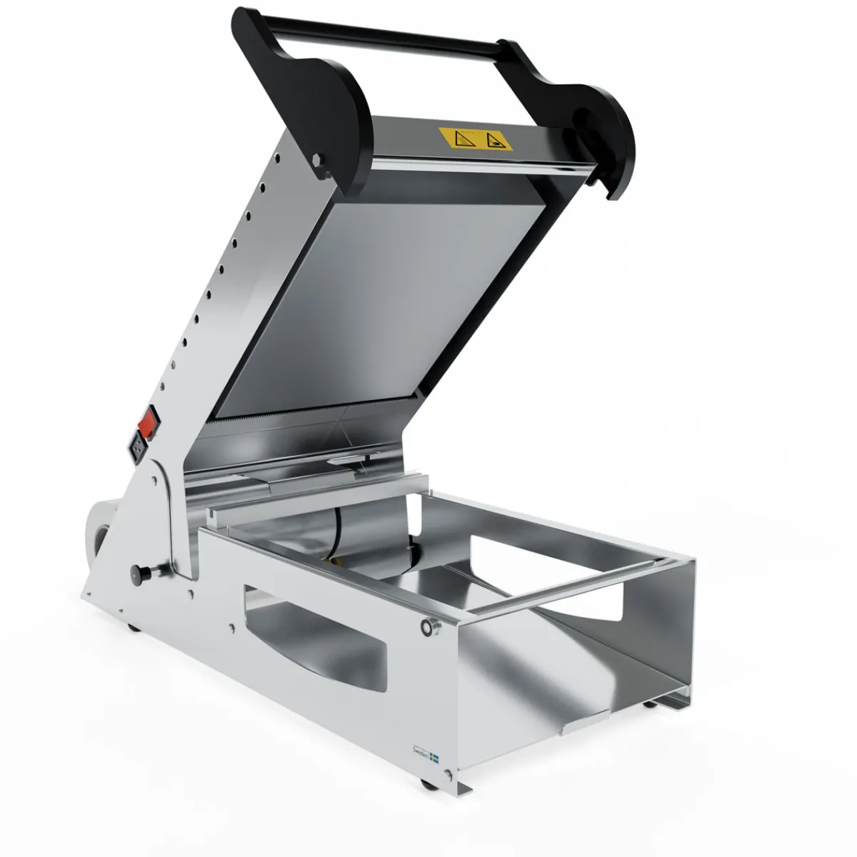 Die manuellen Duniform®-Siegelmaschinen bieten Restaurants, Cafés und Lebensmitteleinzelhändlern die perfekte Einsteiger-Siegelmaschinen zum einfachen und schnellen Versiegeln von Schalen. Einfach die zu versiegelnde Folie einlegen, Folie über die Schale ziehen und den Deckel schließen, um den Siegelvorgang zu starten. Die Kassetten können schnell und einfach gewechselt werden, was eine große Flexibilität bei der Auswahl Ihrer Schalen ermöglicht. Die Maschinen sind aus Edelstahl gefertigt und damit robust und langlebig.