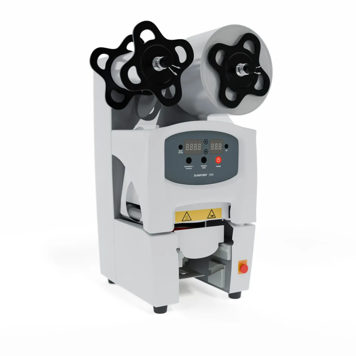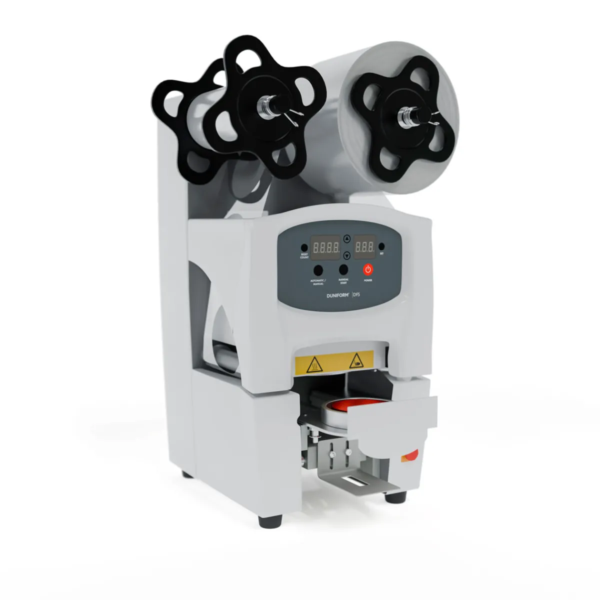 Becher und Gläser schnell, hygienisch und auslaufsicher versiegelt? Mit der halbautomatischen Duniform®-Siegelmaschine für Becher und Gläser geht das kinderleicht. Auf Knopfdruck werden Becher und Gläser perfekt versiegelt und die Folie automatisch aufgewickelt. Einfach in Betrieb zu nehmen und leicht zu bedienen, ist sie die perfekte Einsteiger-Siegelmaschine für Cafés, Restaurants und Lebensmitteleinzelhändler, die Gläser und Becher schnell und problemlos versiegeln möchten.