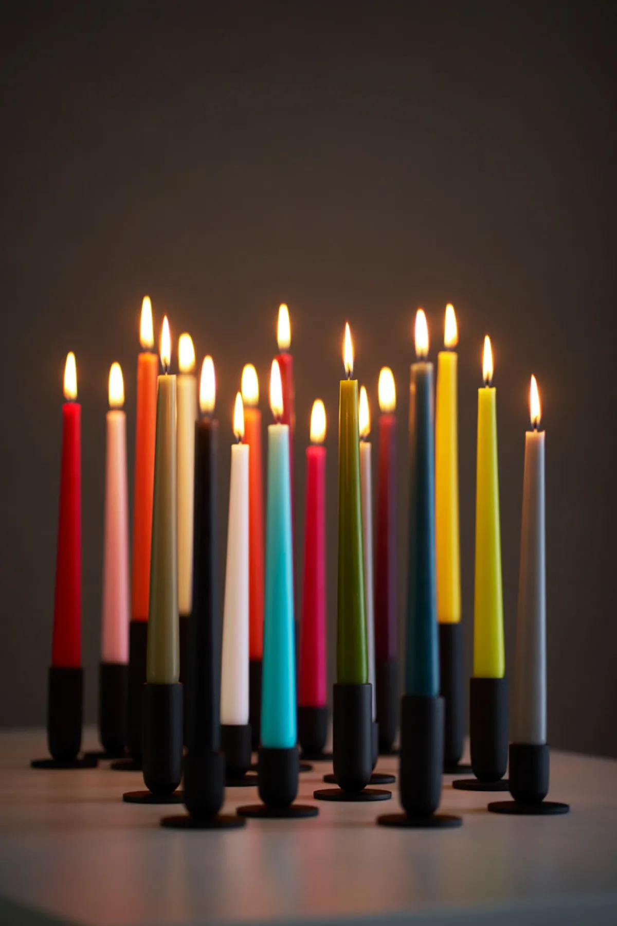 Unsere Leuchterkerzen, die sich ganz klassisch nach oben hin verjüngen, sorgen für eine romantische und dekorative Beleuchtung Ihrer Tische. Sie sind lang, schlank und in den unterschiedlichsten Unifarben erhältlich. Da sie aus hochwertigen Materialien hergestellt wurden, sind sie formstabil und brennen beim gesamten Essen sauber ab.