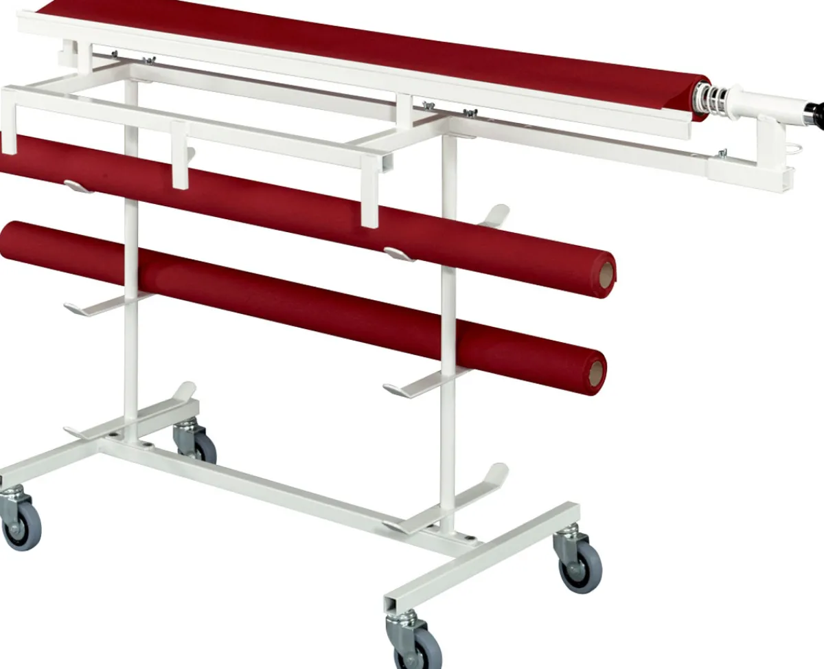 Wenn Sie mehrere Tischdeckenrollen auslegen müssen, aber nur wenig Zeit haben, ist unser Rollenständer „Saaleindecker“ eine große Hilfe. Er vereinfacht den Transport, die Handhabung und das Auslegen der Tischdeckenrollen. Legen Sie die Tischdeckenrollen mühelos auf den Tisch, und ziehen Sie sie rasch und unkompliziert auf die gewünschte Länge aus.