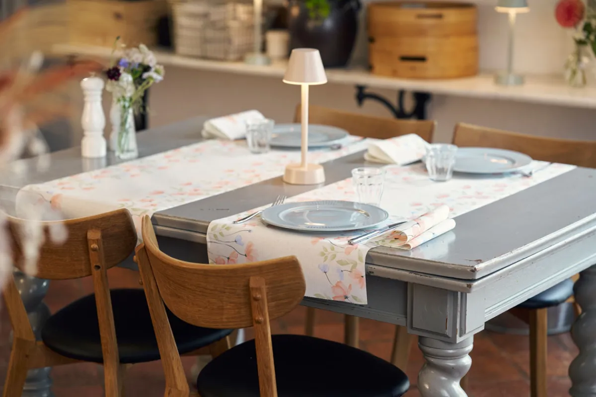 Unser Bio Dunicel® Tête-à-tête ist eine innovative Lösung, um Tische zu schützen und gleichzeitig das Klima zu schonen. Es ist eine nachhaltige Art und Weise, Gäste in einem hochwertigen, farbenfrohen Rahmen zu empfangen.