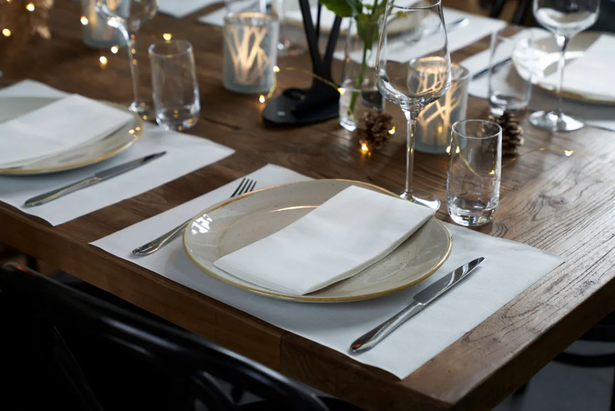 Immer perfekt zu falten. Zeitsparend und bequem – der perfekte Rahmen, wenn mehrere Serviervorgänge in kurzer Zeit erfolgen müssen. Kompakte Größe. In Optik und Haptik nicht von Stoff zu unterscheiden. Elegant geprägt, weich und dick. Kompostierbar.